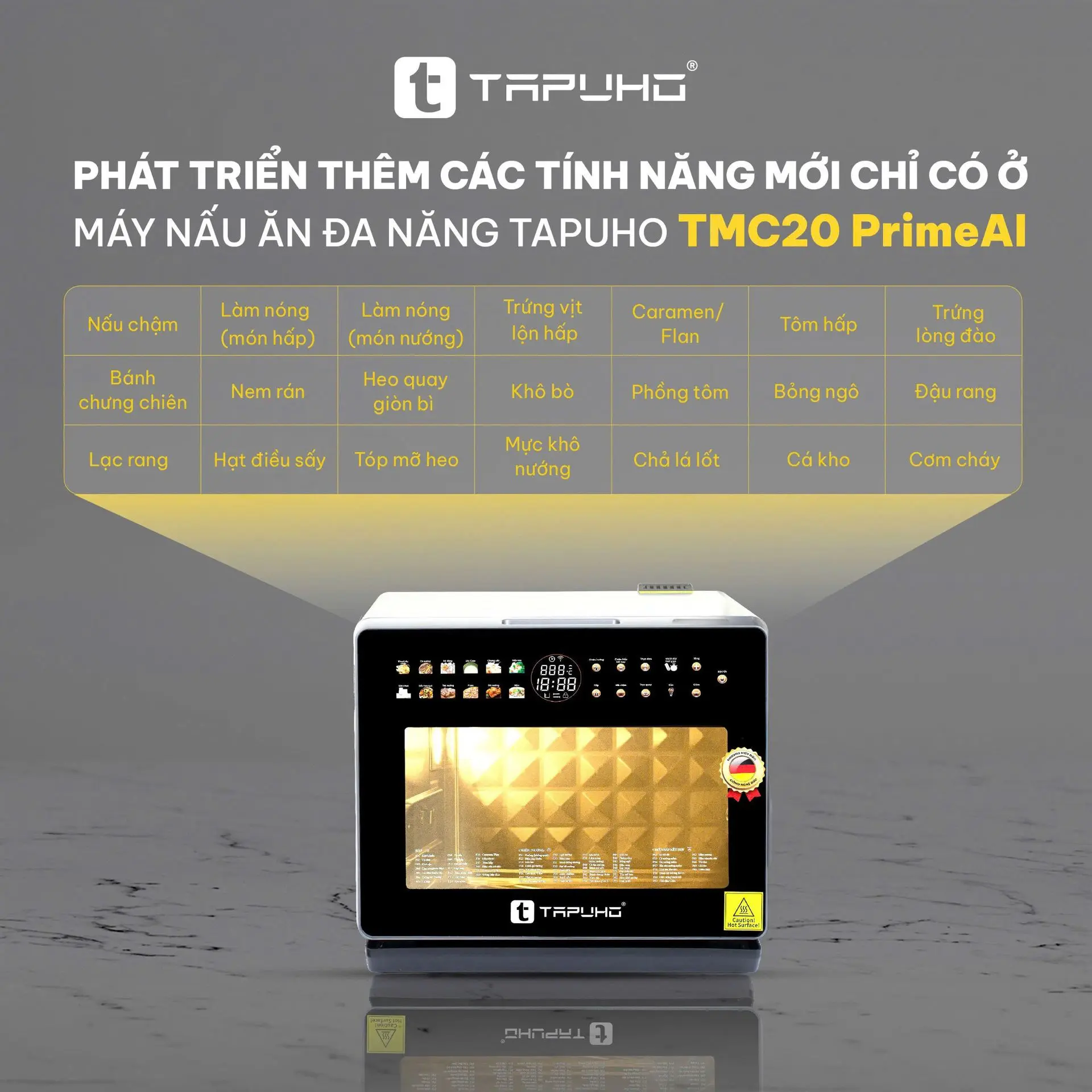 Với công nghệ đa năng, giao diện thân thiện và dải nhiệt linh hoạt, TAPUHO TMC20 PrimeAI là lựa chọn hoàn hảo cho những gia đình muốn đa dạng món ăn, tiết kiệm thời gian nhưng vẫn đảm bảo chất lượng và dinh dưỡng.