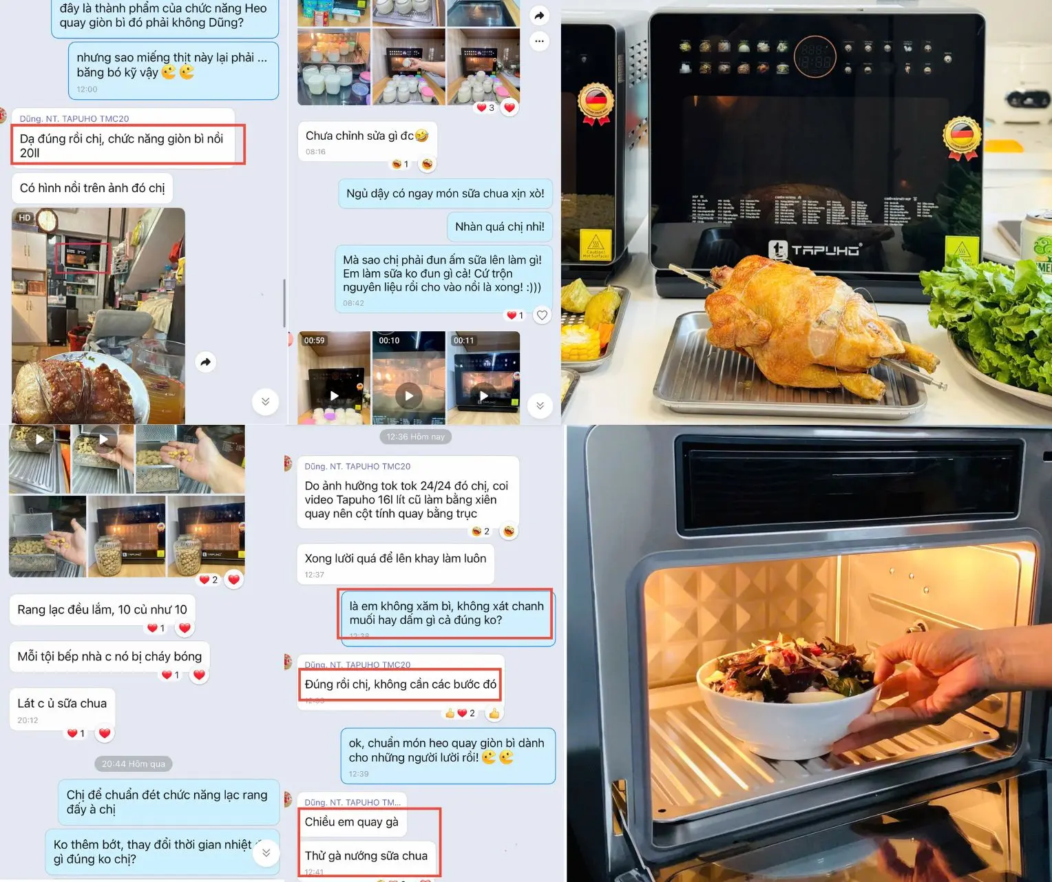 Người dùng đánh giá rất cao TAPUHO TMC20 PrimeAI nhờ khả năng nấu nướng ngon, nhanh và ít phải can thiệp thủ công. Trong quá trình trải nghiệm thực tế, nhiều gia đình phản hồi rằng các món thịt quay giòn bì, gà nướng nguyên con hay heo quay da giòn đều đạt chuẩn “vàng đều, giòn chuẩn, chín sâu bên trong” nhờ trục quay 360° và dải nhiệt rộng của máy.
