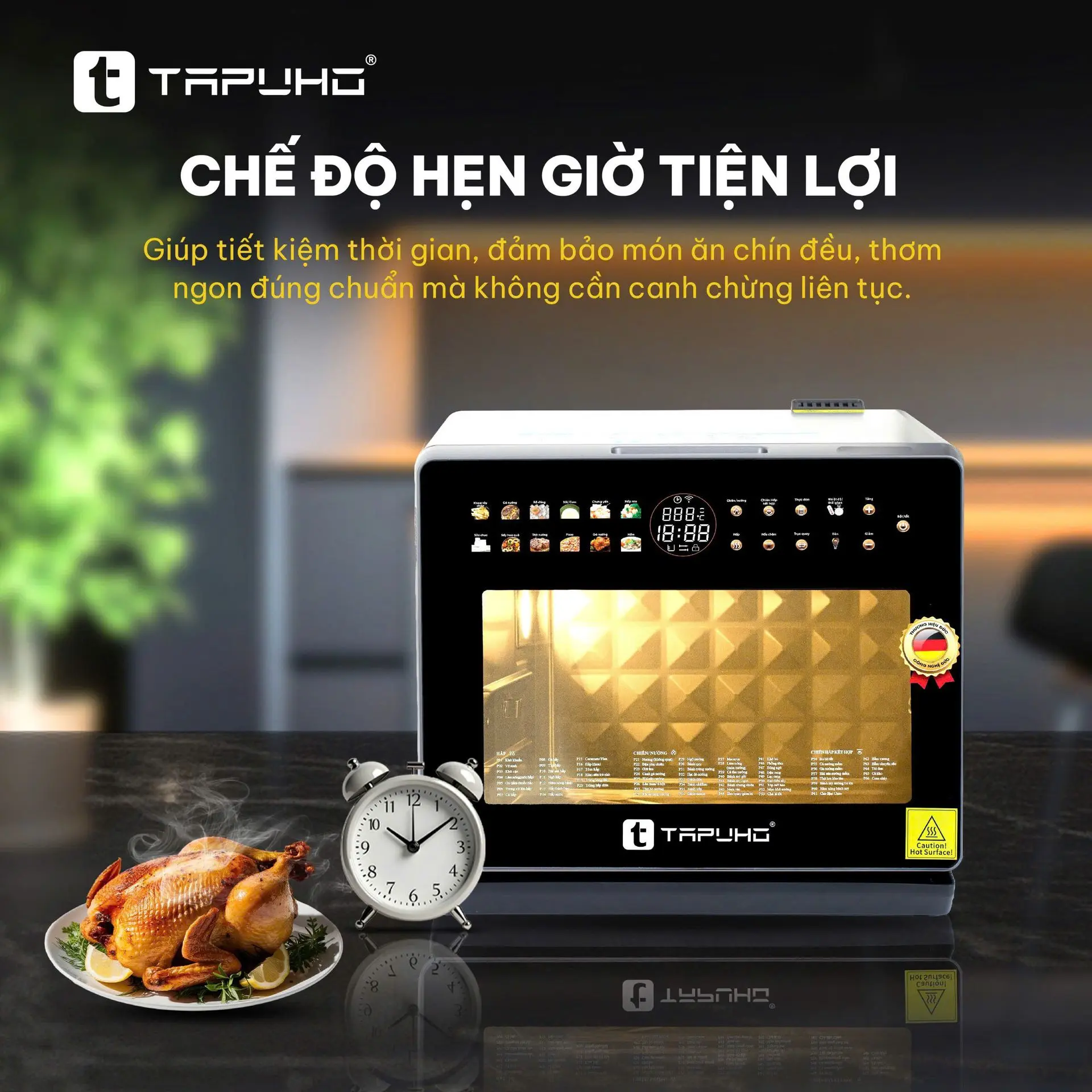 Từ cuối năm 2022, TAPUHO đã ghi dấu ấn mạnh mẽ trên thị trường gia dụng Việt Nam với sự ra đời của Nồi chiên hơi nước TAPUHO TSF16 – sản phẩm tiên phong kết hợp hoàn hảo giữa công nghệ chiên không dầu và hấp hơi nước siêu nhiệt.