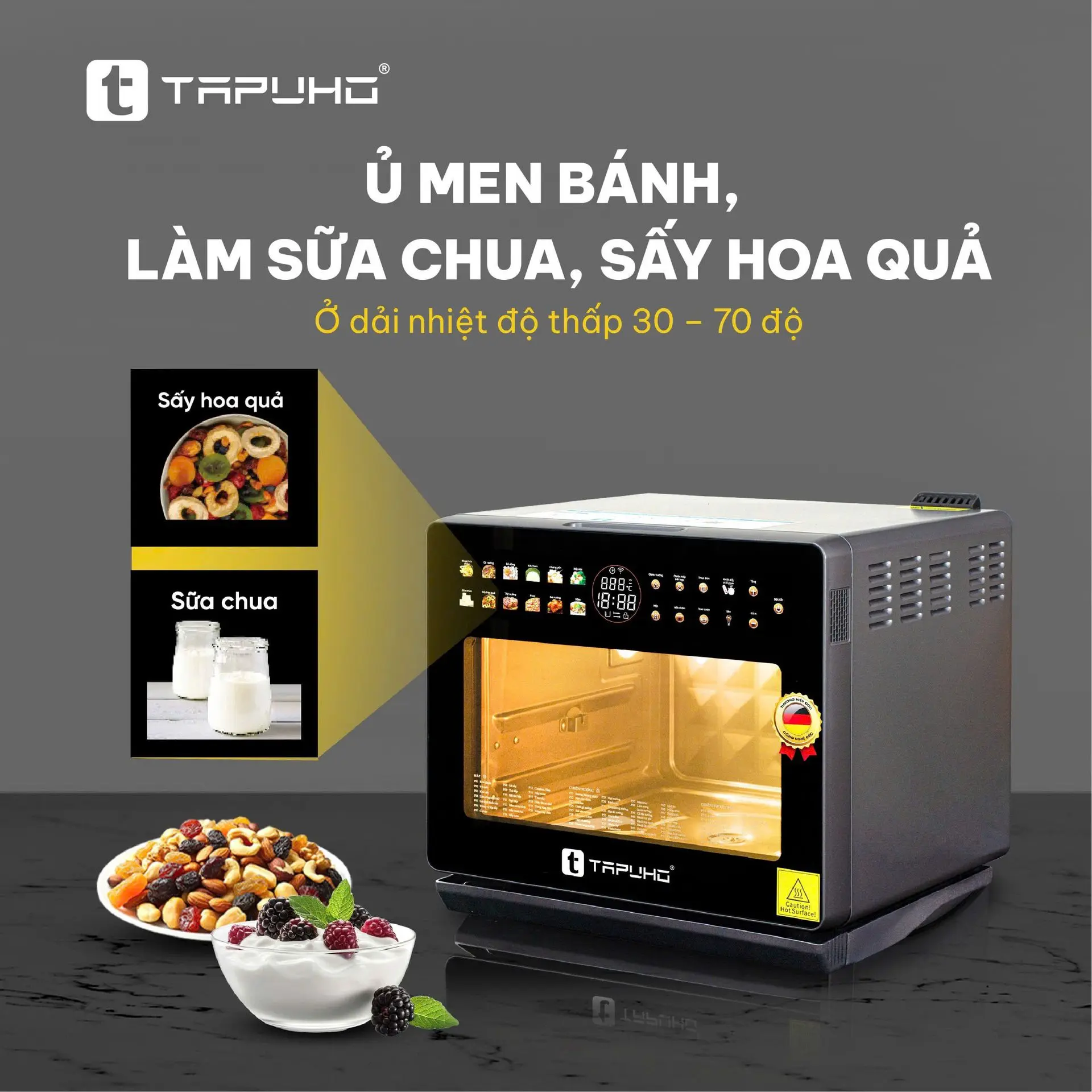Từ bánh, cá nướng, gà quay đến sấy trái cây hay ủ sữa chua – mọi món đều đạt “độ chín vàng” hoàn hảo.
