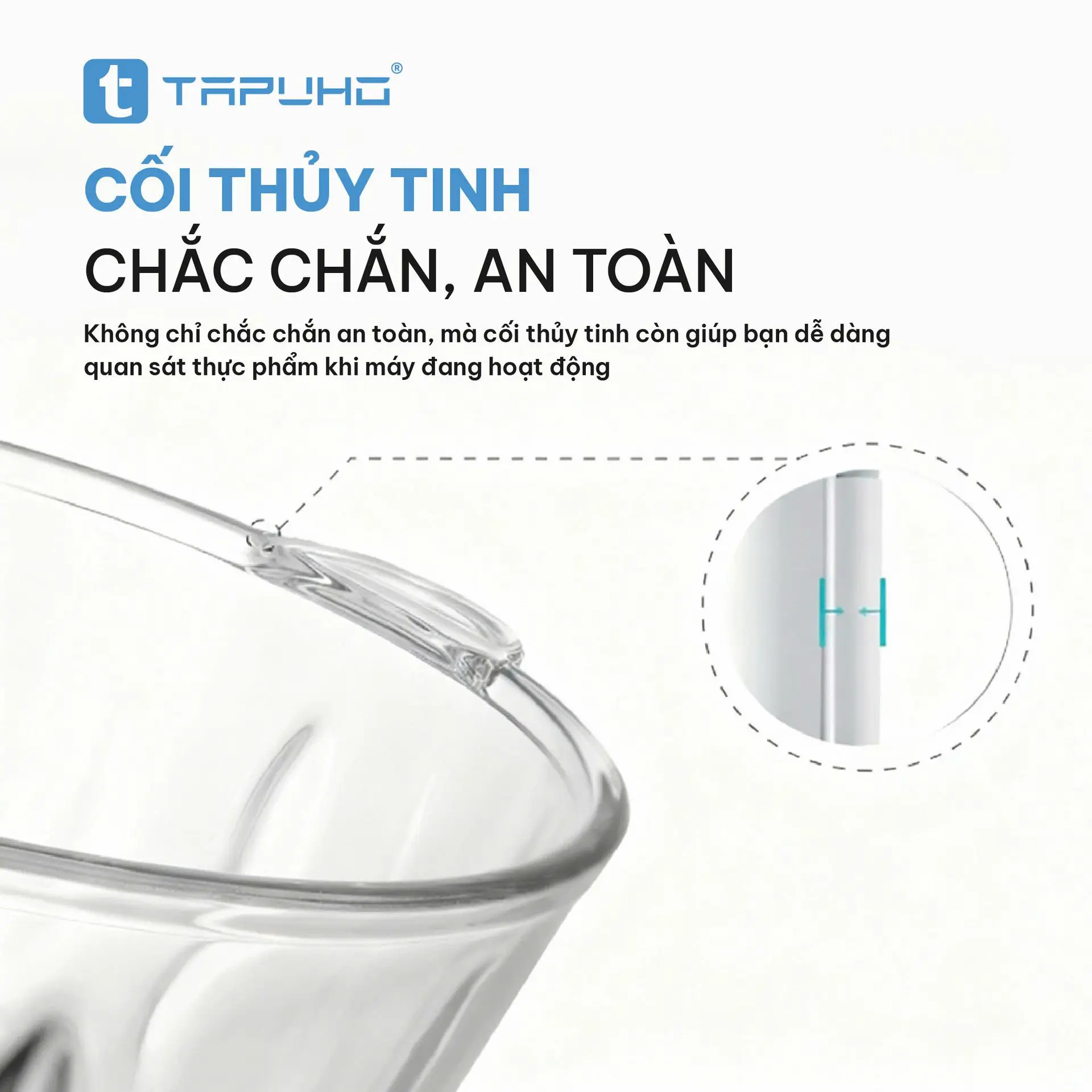 Không như nhiều dòng máy dùng nhựa, TAPUHO TFG500 được trang bị cối thủy tinh cao cấp dày đến 7mm, giúp: