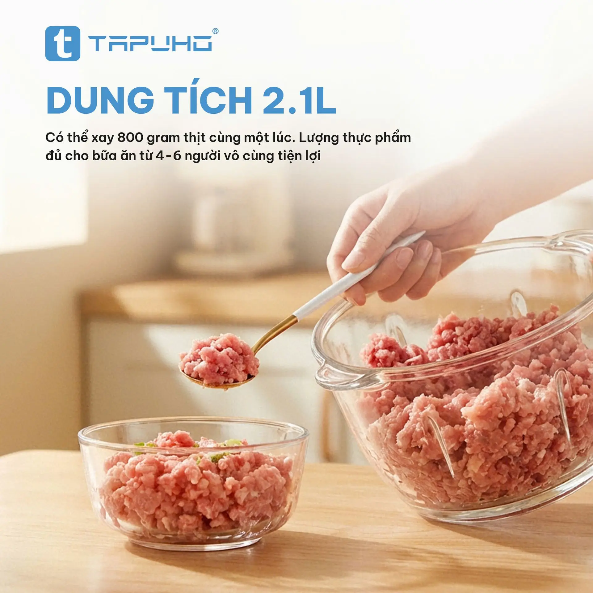 Hiểu rõ nhu cầu đó, TAPUHO – thương hiệu đồ gia dụng uy tín và được hàng nghìn gia đình Việt tin dùng – mang đến sản phẩm TAPUHO TFG500 Glass Food Grinder, chiếc máy xay thực phẩm thủy tinh cao cấp kết hợp hoàn hảo giữa hiệu năng mạnh mẽ – độ bền vượt trội – và thiết kế tinh tế.