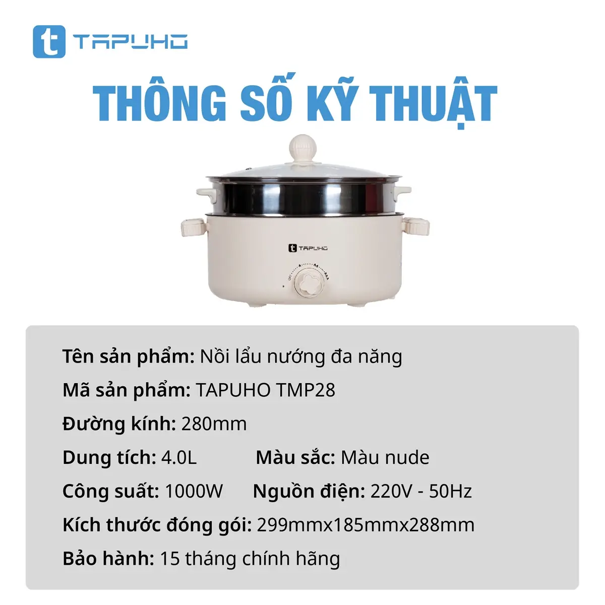 Nồi Lẩu Nướng Hấp Đa Năng TAPUHO TMP28