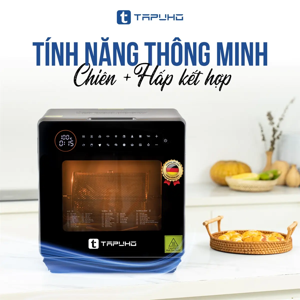 TAPUHO LUXURY STEAM FRYER TSF16 là sản phẩm nồi chiên hơi nước mới nhất của TAPUHO - thương hiệu gia dụng cao cấp đến từ Đức. Đây là dòng sản phẩm mang tính đột phá, bùng nổ công nghệ với sự kết hợp giữa nồi chiên không dầu (công nghệ rapid air) và nồi hấp (công nghệ hơi nước siêu nhiệt steam pro) mang đến sự tiện lợi cho khách hàng, ngoài ra nó còn là sự kết hợp 4 tính năng trong 1, đó là tính năng Hấp - Chiên không dầu - Chiên hấp kết hợp - Hầm và đặc biệt có những chức năng chỉ có trên TAPUHO LUXURY STEAM FRYER TSF16 mà chưa từng có trên bất kỳ sản phẩm cùng loại nào trên thị trường.