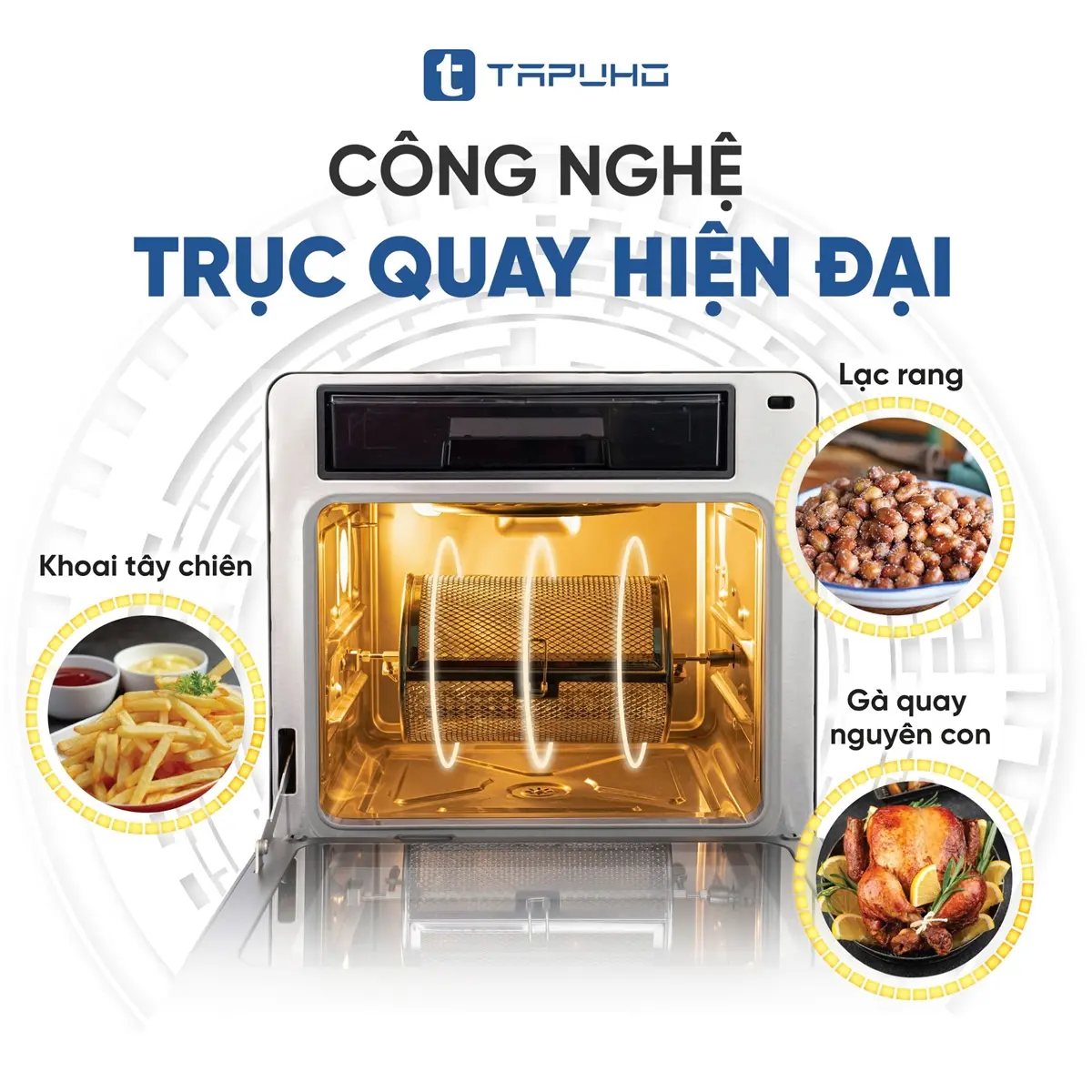 Với tính năng này, chúng ta có thể chiên/ nướng cả con gà nguyên con quay tự động, chiên khoai tây, rang các loại đậu hạt chín đều mà không cần bất kỳ thao tác lật trở nào, mang lại sự tiện dụng tối đa cho người tiêu dùng.