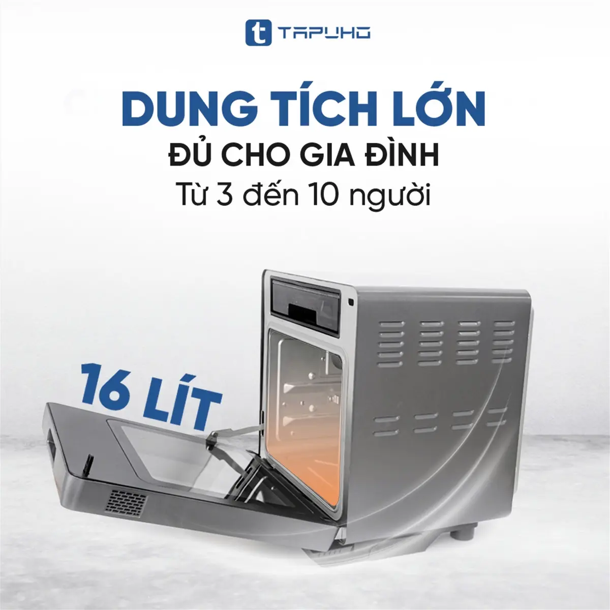 Nồi chiên hơi nước TAPUHO LUXURY STEAM FRYER TSF16 COLOR có dung tích lớn 16 lít, phần khoang chiên rộng rãi hoàn toàn có thể quay gà, vịt nguyên con hay chế biến nhiều loại thực phẩm cùng một lúc, không cần phải cắt nhỏ thực phẩm, rút ngắn thời gian nấu nướng một cách tối đa. Không chỉ đáp ứng bữa ăn cho cả gia đình mà còn phục vụ đủ nhu cầu trong các buổi party tại gia đơn giản, nhanh chóng và thuận tiện.