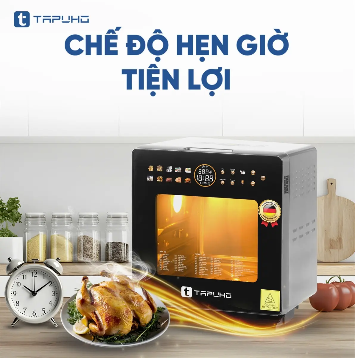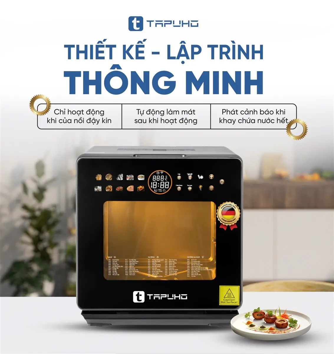 - Nồi chiên hơi nước TAPUHO LUXURY STEAM FRYER TSF16 COLOR có 1 công tắc an toàn, đảm bảo khi đóng cửa nồi, nồi mới hoạt động và khi cửa chưa được đóng chặt thì nồi sẽ không hoạt động.