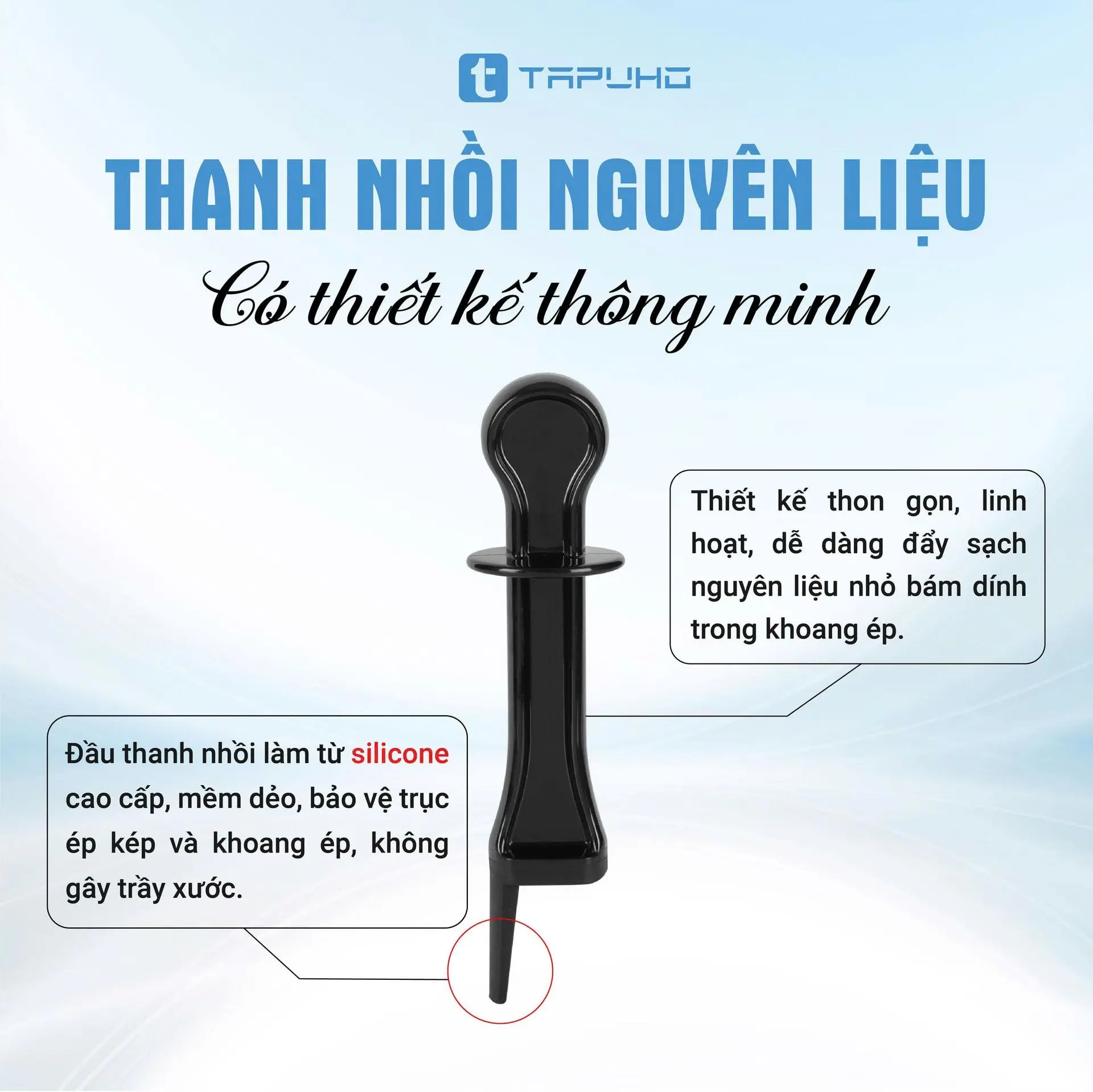 Đầu thanh nhồi làm từ silicone cao cấp, mềm dẻo, bảo vệ trục ép kép và khoang ép, không gây trầy xước, duy trì tuổi thọ máy bền lâu.